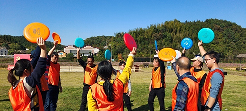 此外,團建活動還開展了飛盤游戲,從飛盤手感練習小游戲“移花接木”開始,全體人員進入了難度更高的協作活動中,在扔盤、接盤、擲準比賽中,人們充分體驗并加強了團隊意識、公平意識和守則意識。